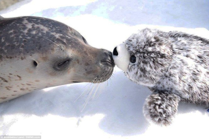 Hải cẩu ôm người bạn mới một cách đầy trìu mến - Ảnh: Mombetsu Land