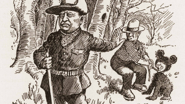 Mùa thu năm 1902, ông Roosevelt đến Mississippi để săn gấu đen ở ven thị trấn Smedes. Sau ngày đầu tiên, cả đoàn không săn được con gấu nào. Đến ngày thứ hai, một tùy tùng của ông tên là Holt Collier đã dồn được một con gấu con đến một gốc cây. Roosevlt được mời đến để bắn con gấu. Tuy nhiên, khi nhìn thấy con vật đáng thương ấy, Roosevlt đã từ chối bắn nó.